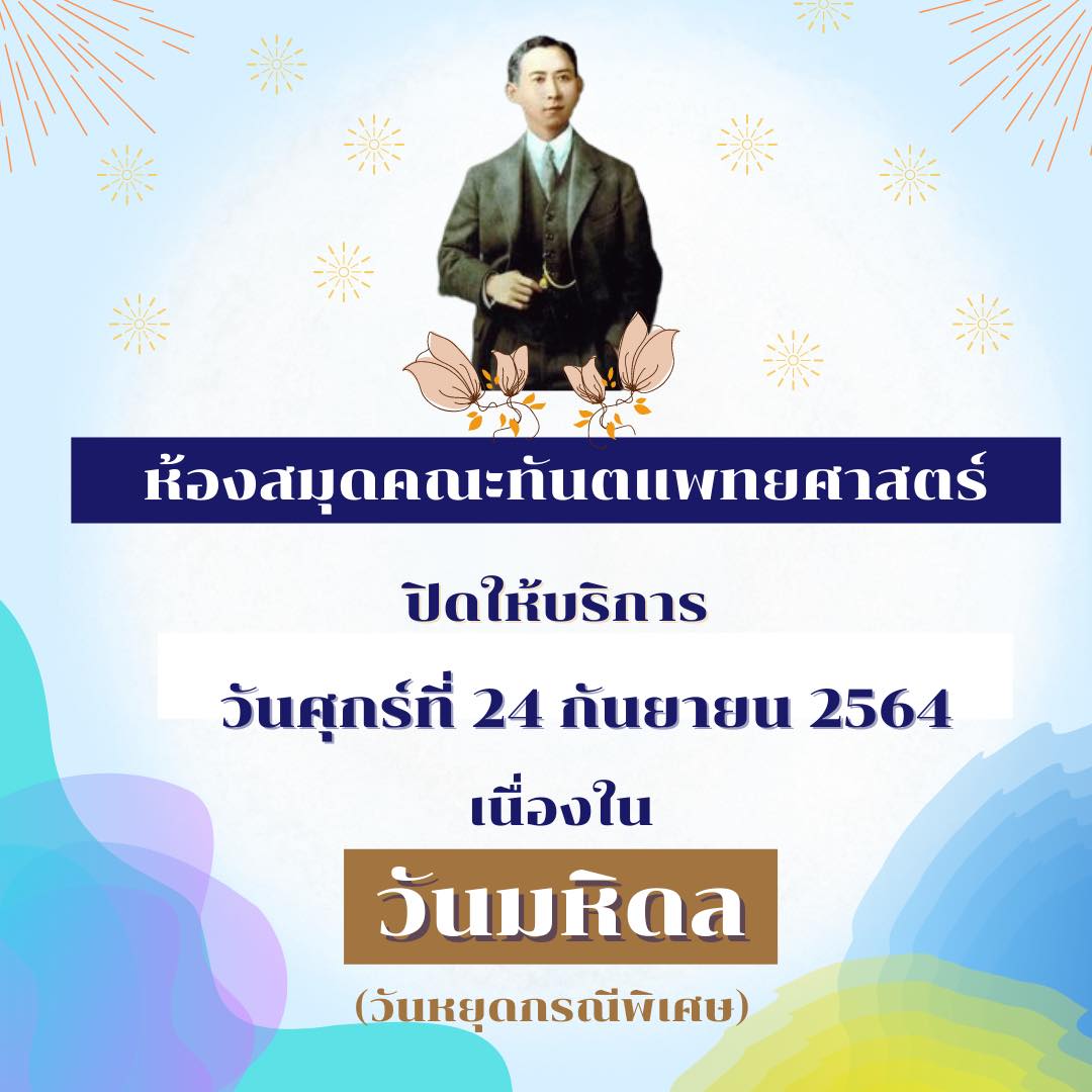 ห้องสมุดปิดให้บริการ ในวันศุกร์ที่ 24 กันยายน 2564 เนื่องในวันมหิดล (วันหยุดกรณีพิเศษ)