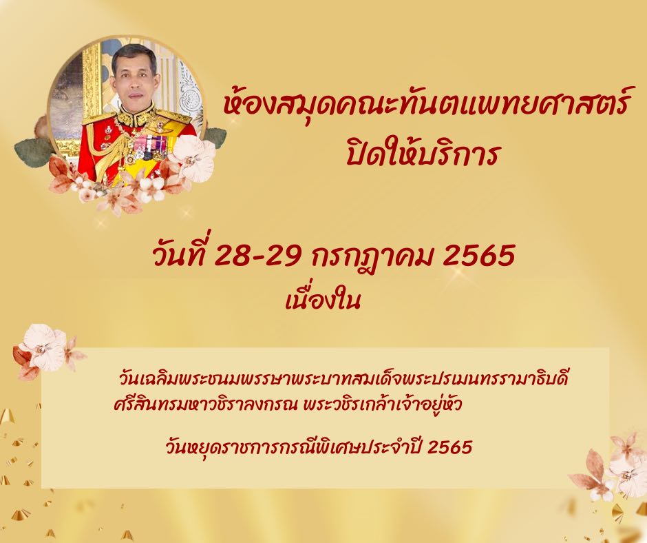 ห้องสมุดปิดให้บริการในวันที่ 28-29 กรกฎาคม 2565