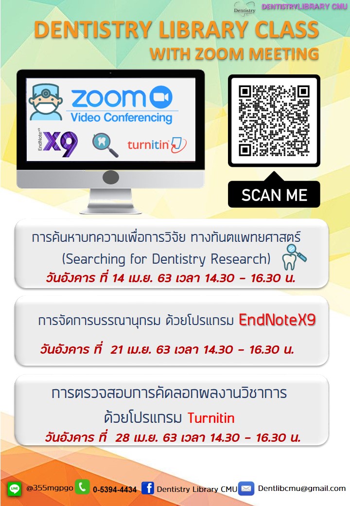 ขอเชิญเข้าร่วมอบรมเชิงปฏิบัติการ Dentistry Library Class ประจำเดือนเมษายน 2563