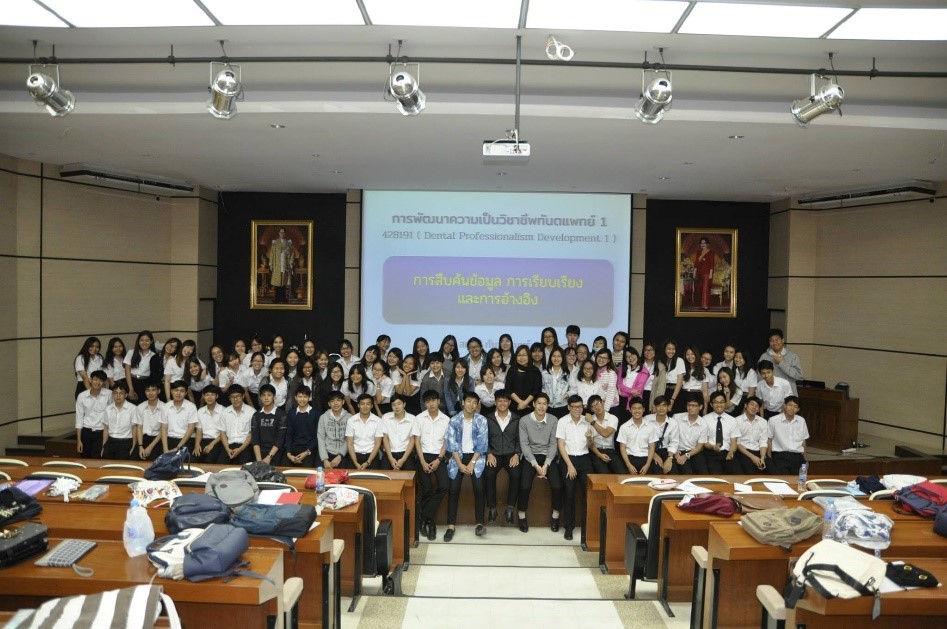 บรรยายหัวข้อ การสืบค้นข้อมูล การเรียบเรียงและการอ้างอิง ในกระบวนวิชาพัฒนาความเป็นวิชาชีพทันตแพทย์ 1 แก่นักศึกษาคณะทันตแพทยศาสตร์ ระดับปริญญาตรี ชั้นปีที่ 1 จำนวน 78 คน ณ ห้องประชุมสุทธาสิโนบล ในวันที่ 18 และ 25 มกราคม 2560
