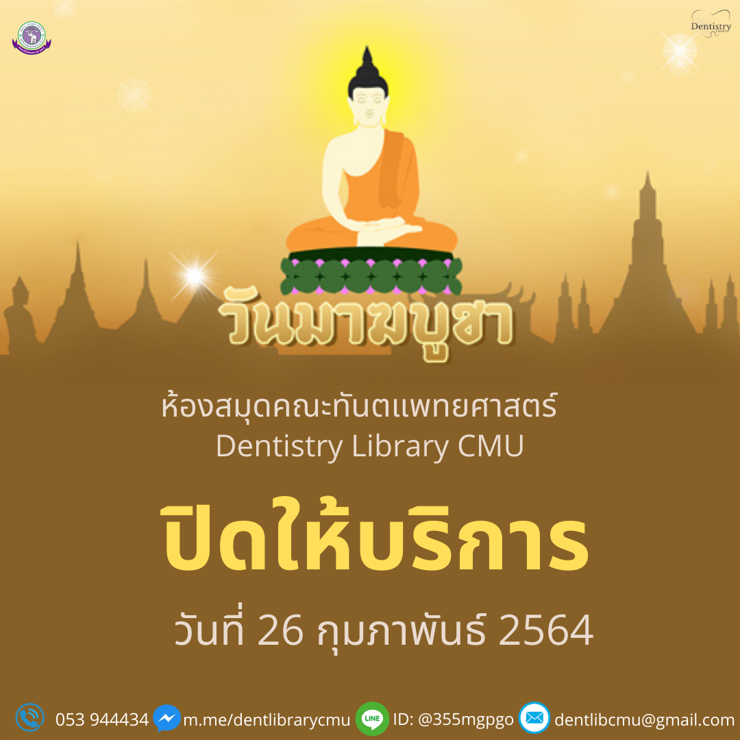 ห้องสมุดปิดให้บริการ ในวันศุกร์ ที่ 26 กุมภาพันธ์ 2564 เนื่องในวันมาฆบูชา
