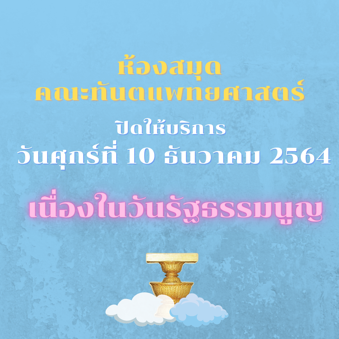 ห้องสมุดปิดให้บริการในวันศุกร์ ที่ 10 ธันวาคม 2564