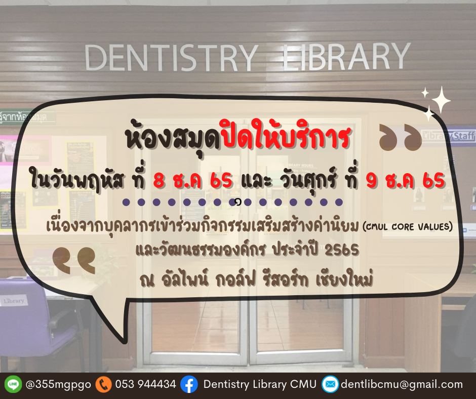 ห้องสมุดปิดให้บริการ ในวันพฤหัสบดี ที่ 8 ธ.ค 65 และวันศุกร์ ที่ 9 ธ.ค 65
