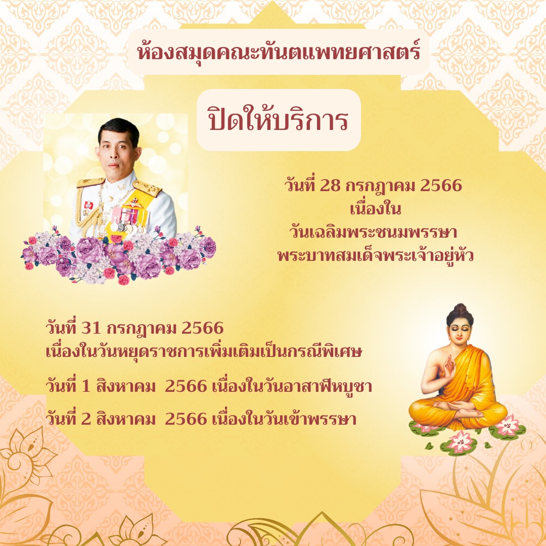 ห้องสมุดคณะทันตแพทยศาสตร์ ปิดให้บริการในวันที่ 28 ก.ค และ 31 ก.ค-2 ส.ค 66