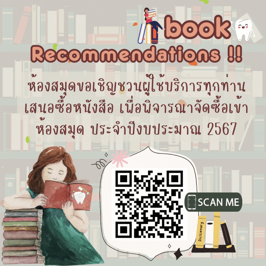 ห้องสมุดขอเชิญชวนผู้ใช้บริการเสนอซื้อหนังสือเพื่อพิจารณาจัดซื้อเข้าห้องสมุด ประจำปีงบประมาณ 2567 คลิกได้เลยที่ https://forms.gle/LqZ6otpNfYbwggX