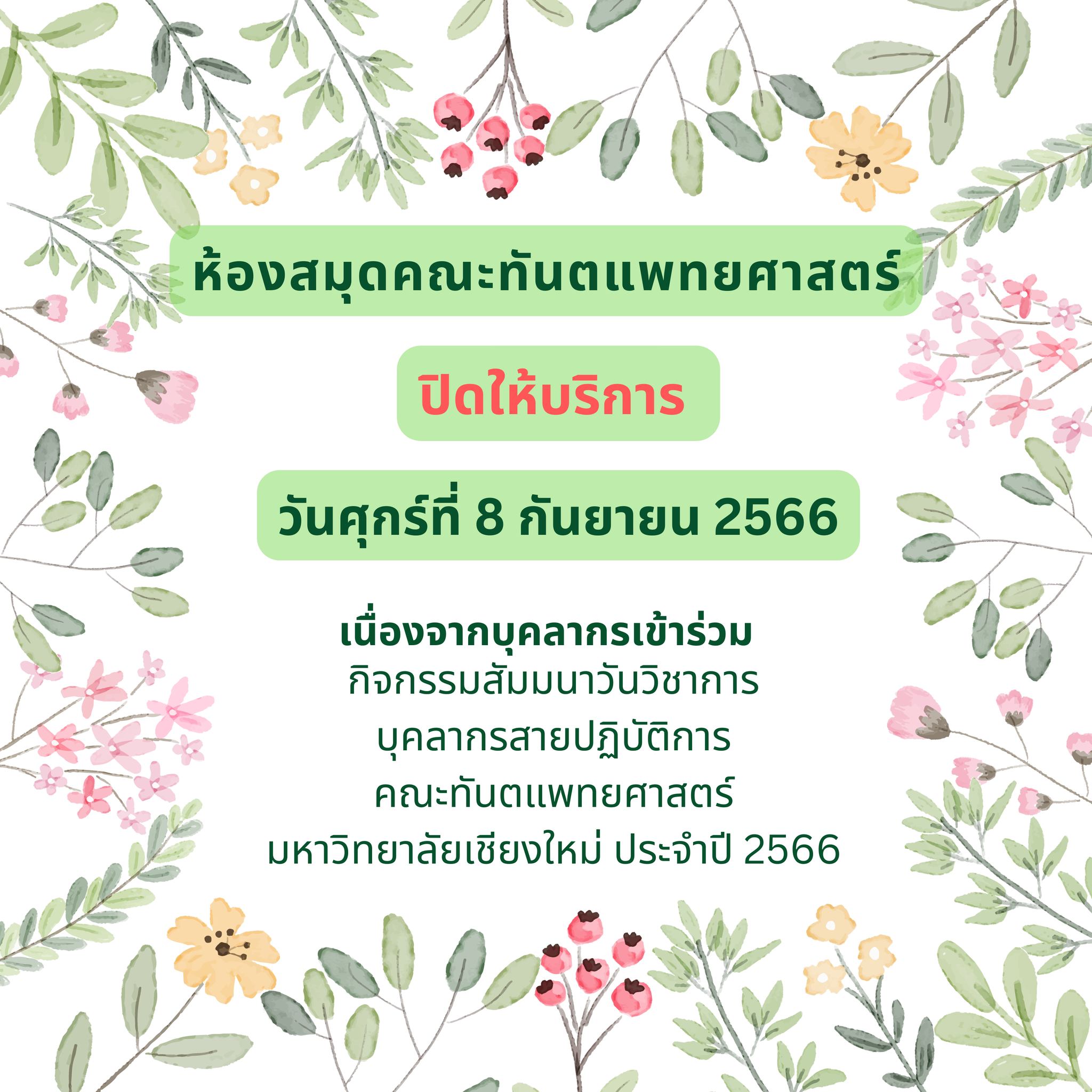ห้องสมุดคณะทันตแพทยศาสตร์ ปิดให้บริการ วันศุกร์ที่ 8 กันยายน 2566