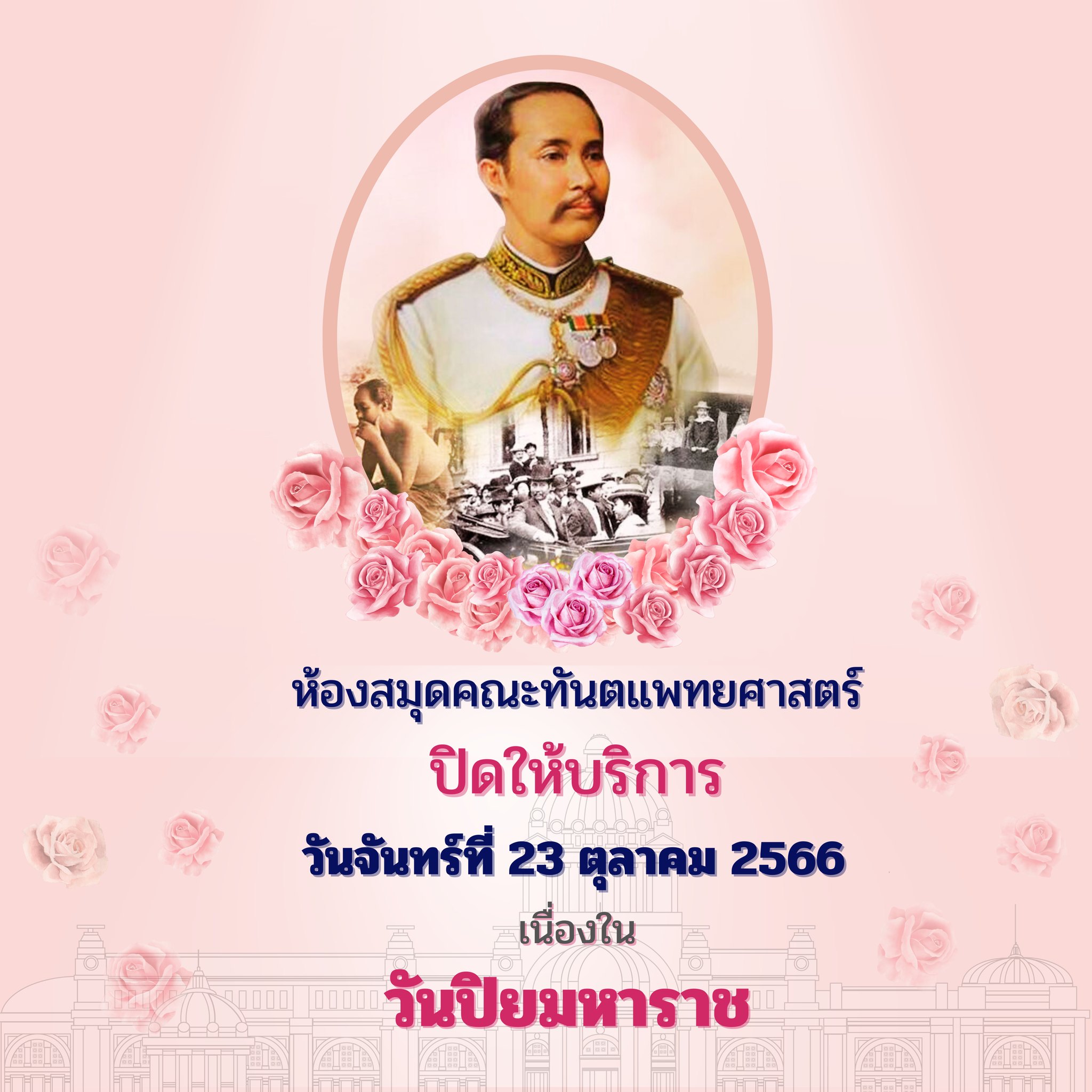 ห้องสมุดคณะทันตแพทยศาสตร์ ปิดให้บริการ ในวันจันทร์ที่ 23 ตุลาคม 2566 เนื่องใน วันปิยมหาราช