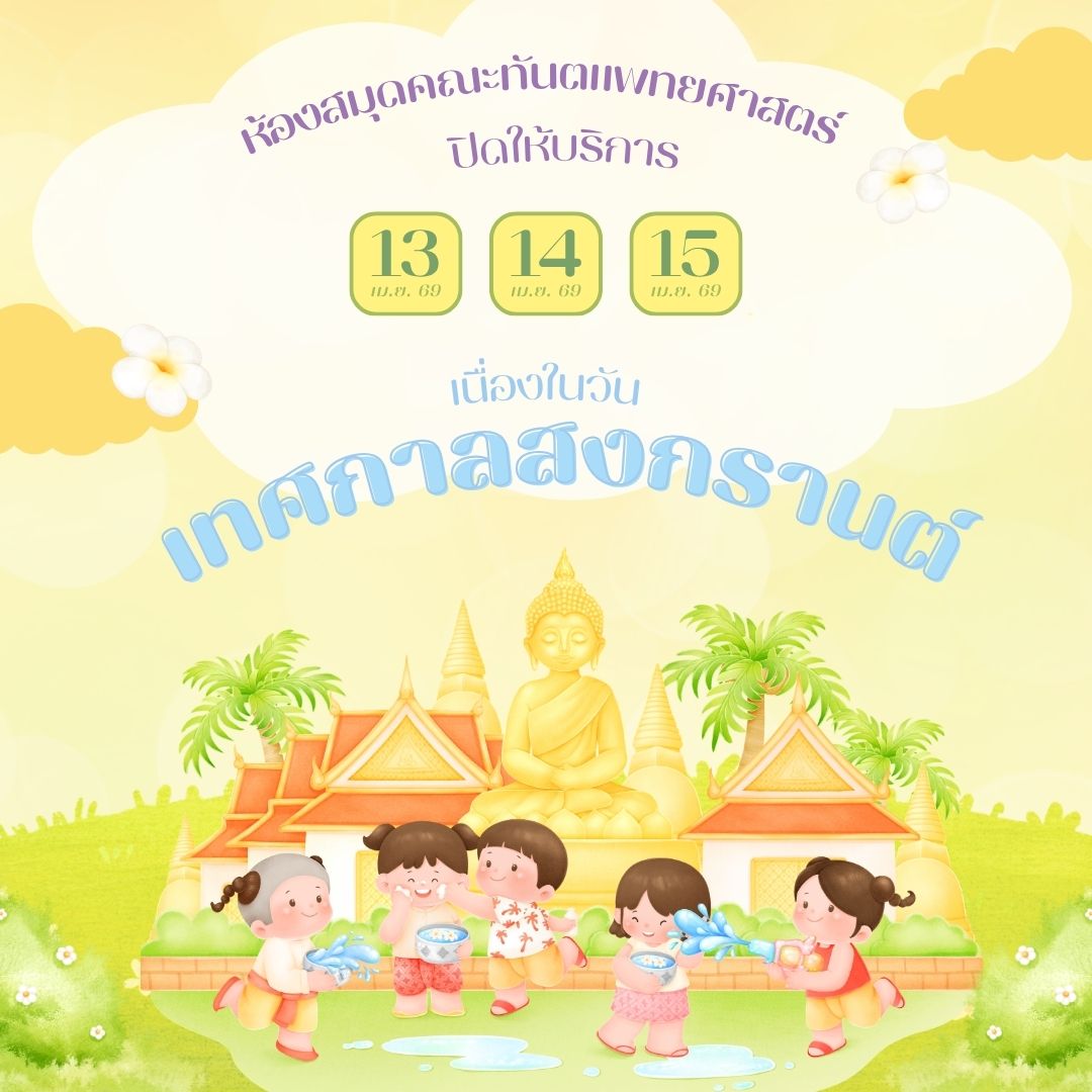 ห้องสมุดคณะทันตแพทยศาสตร์ ปิดให้บริการ ในวันที่ 13-15 เมษายน 2569 เนื่องในวันสงกรานต์