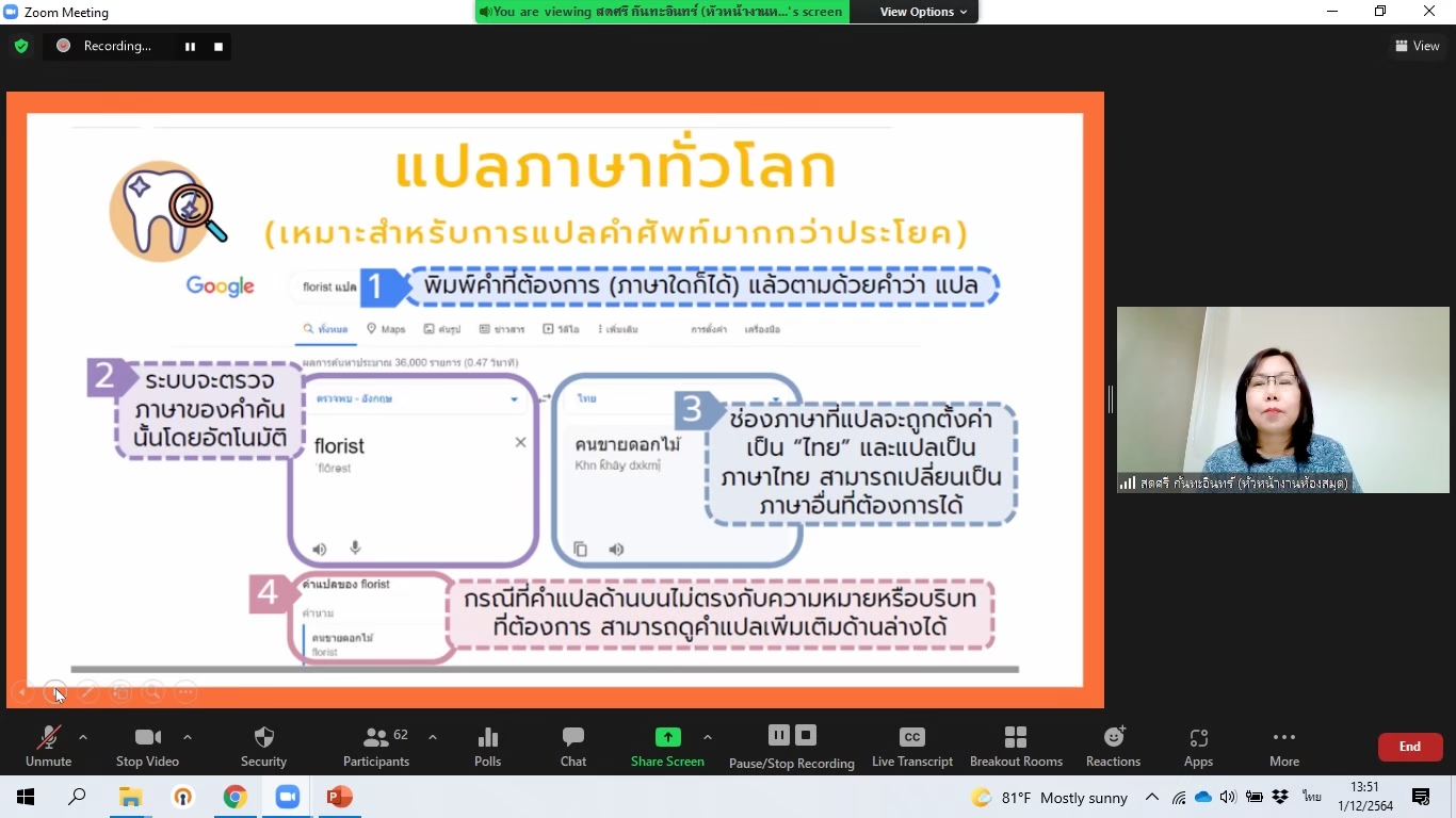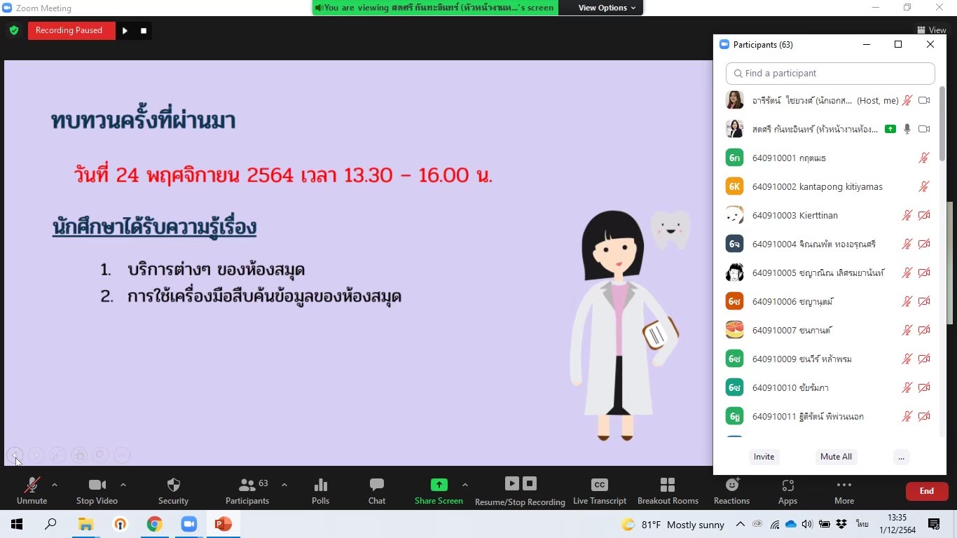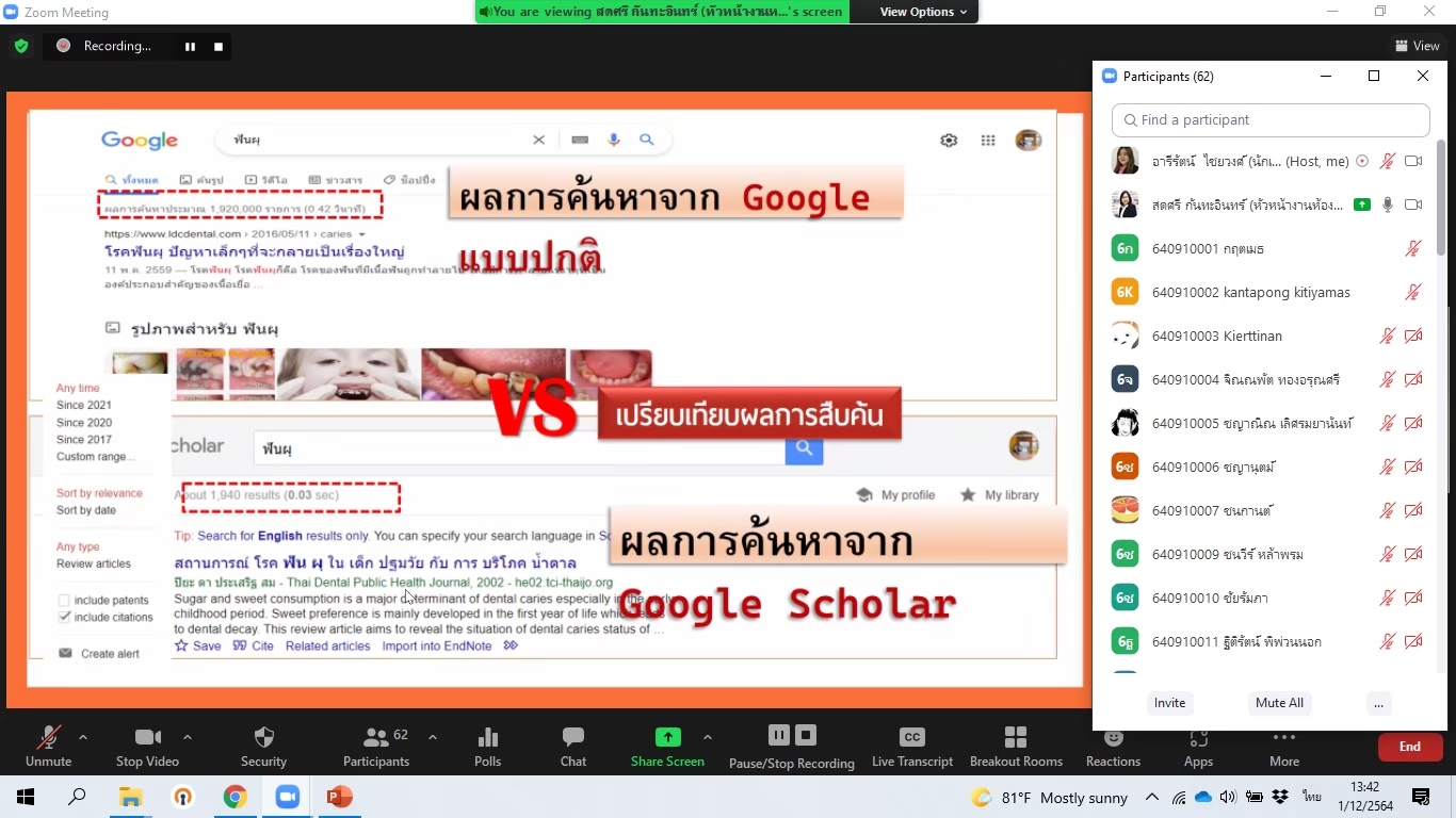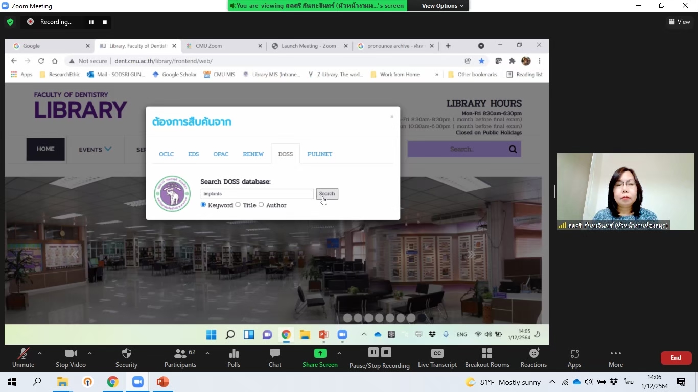 ​ห้องสมุดสอนการสืบค้นข้อมูลและการอ้างอิงในกระบวนวิชา Dental Professionalism Development 1 ผ่านโปรแกรม Zoom Meeting