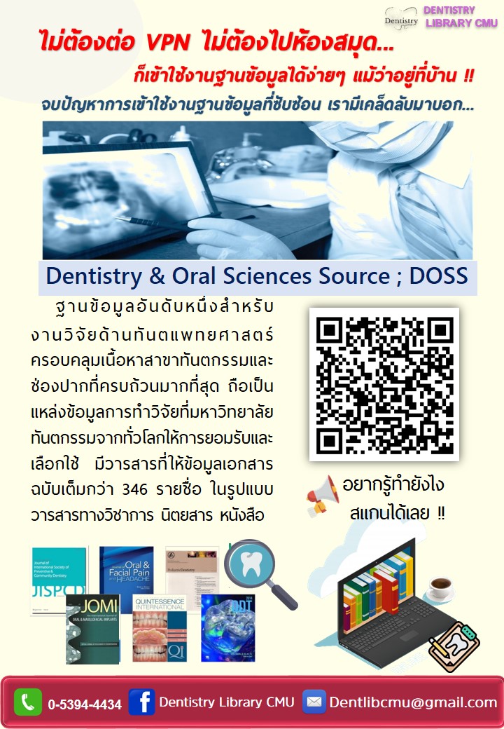แนะนำวิธีการเข้าใช้งานฐานข้อมูลทางด้านทันตแพทยศาสตร์ (Dentistry & Oral Sciences Source ; DOSS) อยู่บ้านก็ใช้งานได้