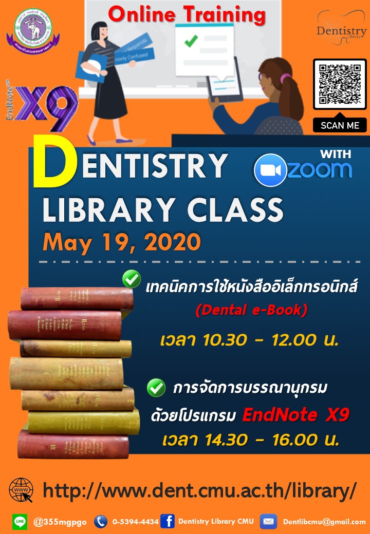 ตารางอบรม Dentistry Library class ประจำเดือน พฤษภาคม 2563 ในวันที่ 19 พฤษภาคม 2563