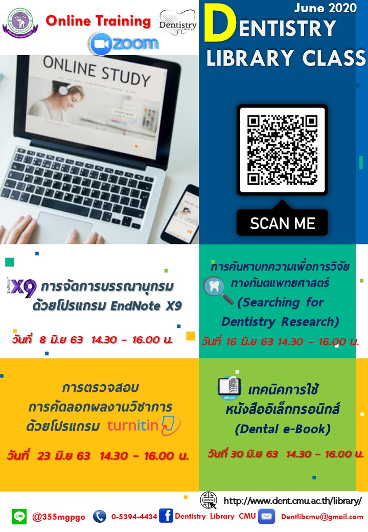 โปรแกรมการอบรมเชิงปฏิบัติการ Dentistry Library Class ประจำเดือนมิถุนายน 2563 With Zoom meeting