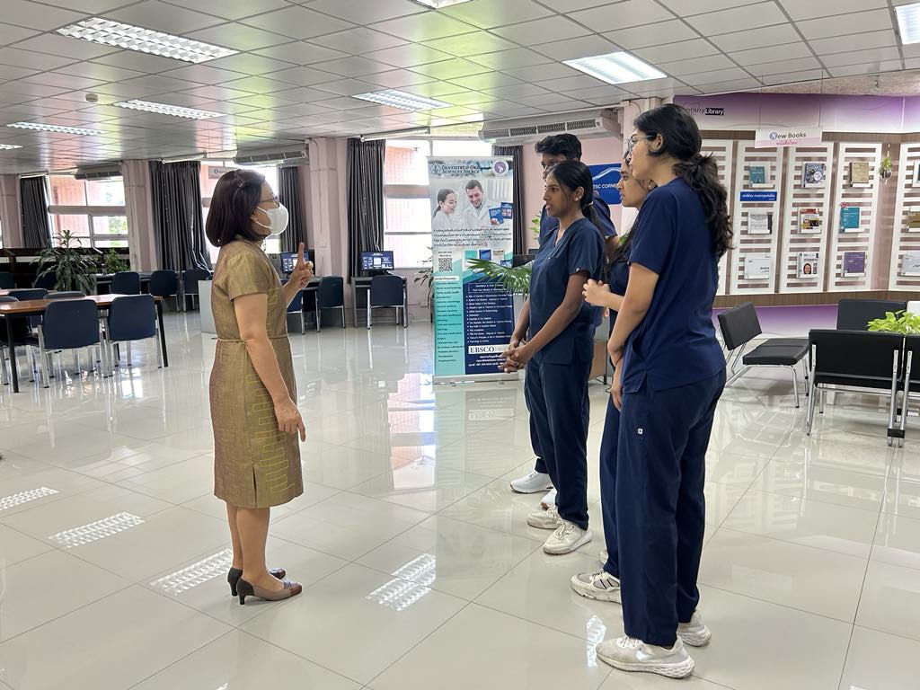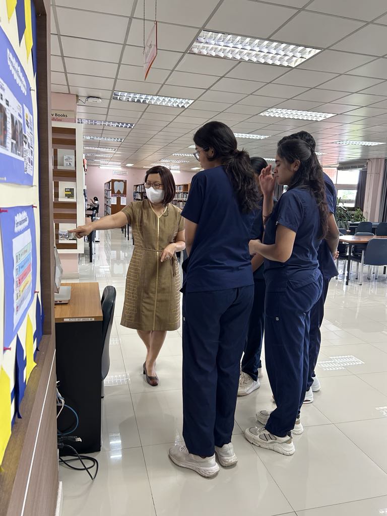 ห้องสมุดให้การต้อนรับและแนะนำบริการให้แก่นักศึกษาทันตแพทย์ระดับปริญญาตรี ชาวอินเดีย จำนวน 4 ราย จาก Saveetha Dental College, Saveetha Institute of Medical and Technical Sciences (SIMATS), India ในวันที่ 8 กรกฎาคม 2567