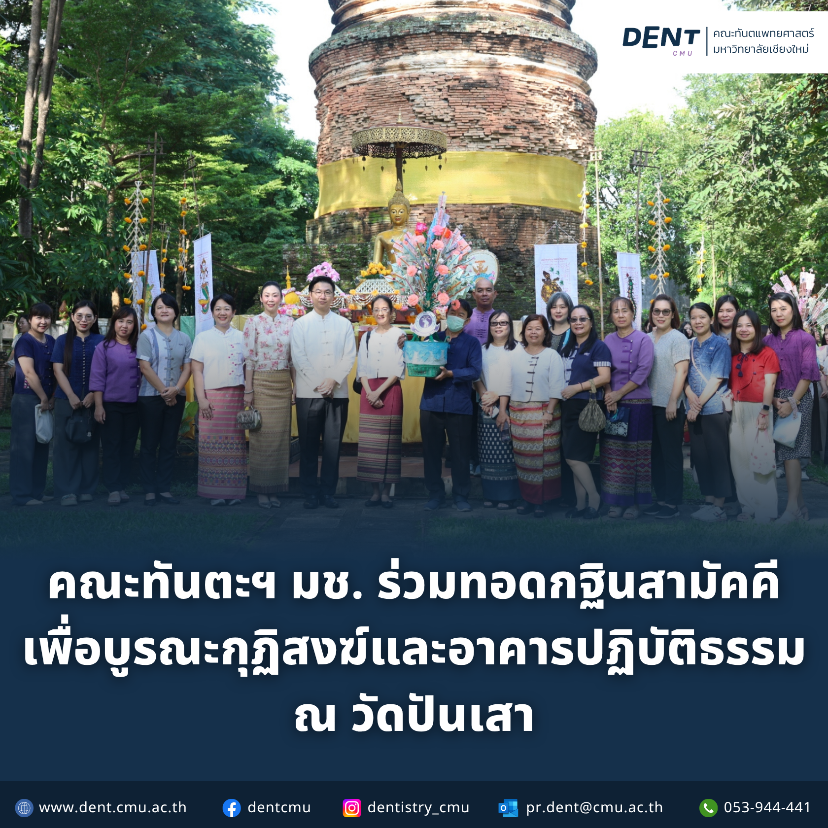 รศ.ทพญ.สั่งสม ประภายสาธก รองคณบดีฝ่ายบริหาร คณะทันตแพทยศาสตร์ มหาวิทยาลัยเชียงใหม่ พร้อมด้วยผู้บริหาร อาจารย์ หัวหน้างาน และบุคลากรคณะฯ ร่วมเป็นเจ้าภาพ ทอดกฐินสามัคคี ประจำปี 2568 เพื่อร่วมสมทบทุนบูรณะกุฏิสงฆ์และอาคารปฏิบัติธรรม ณ วัดปันเสา ตำบลศรีภูมิ อำเภอเมือง จังหวัดเชียงใหม่