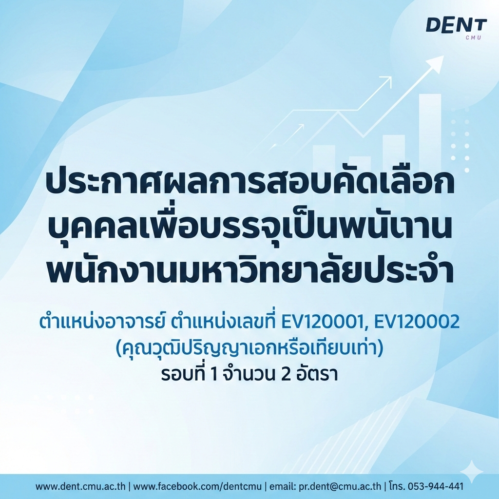 ประกาศผลการสอบคัดเลือกบุคคลเพื่อบรรจุเป็นพนักงานมหาวิทยาลัยประจำ ตำแหน่งอาจารย์ ตำแหน่งเลขที่ EV120001, EV120002 (คุณวุฒิปริญญาเอกหรือเทียบเท่า) รอบที่ 1 จำนวน 2 อัตรา