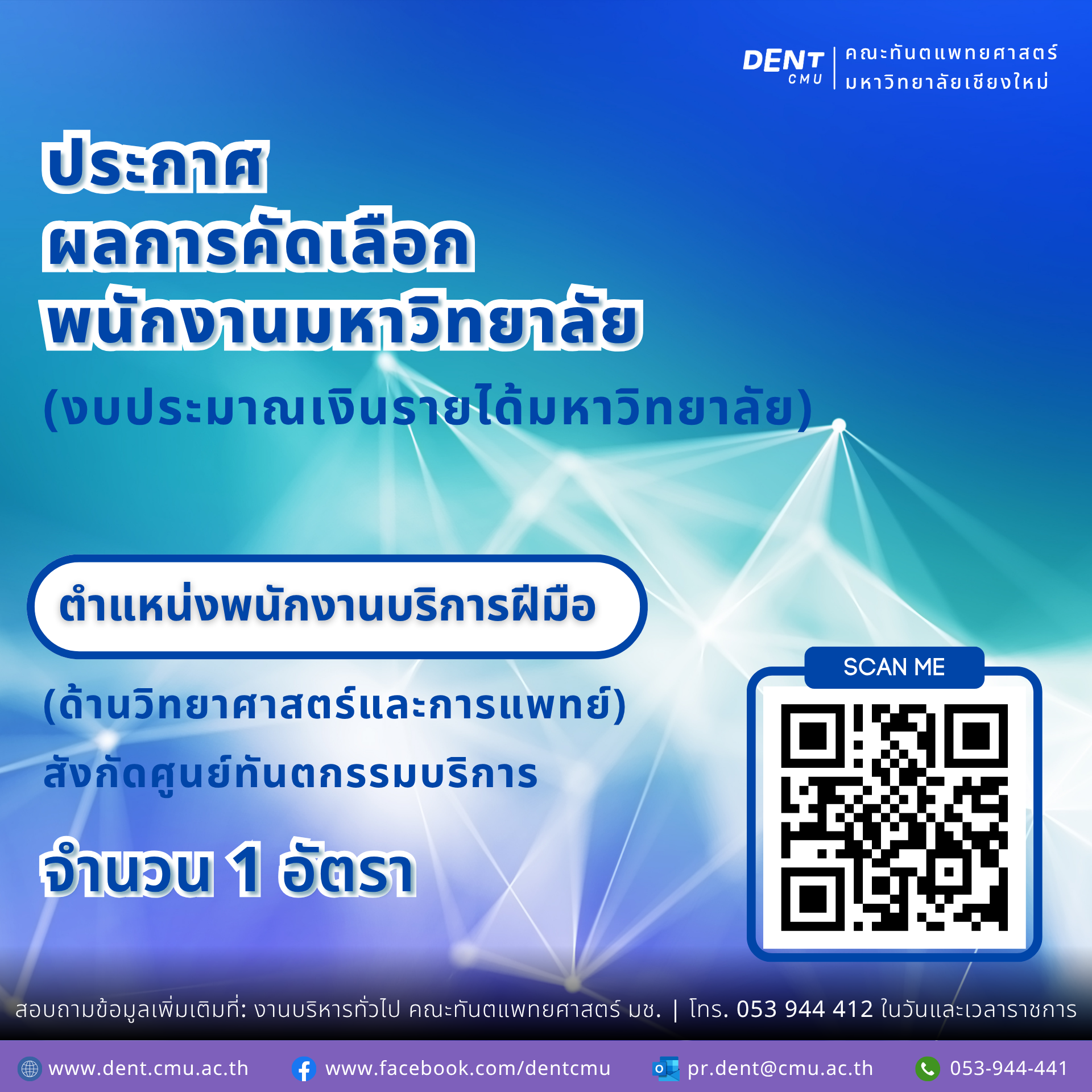 ประกาศ ผลการคัดเลือก พนักงานมหาวิทยาลัย ตำแหน่งพนักงานบริการฝีมือ (งบประมาณเงินรายได้มหาวิทยาลัย)