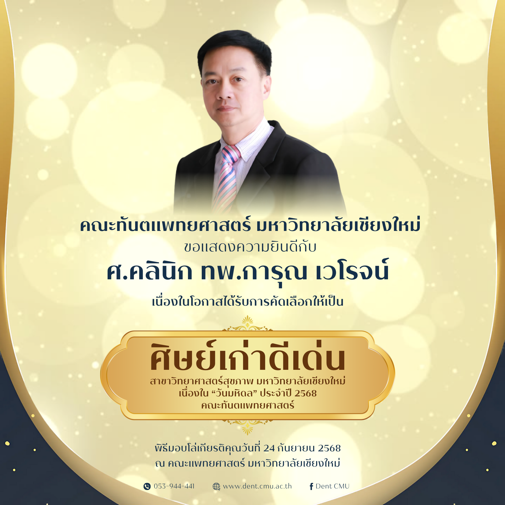 คณะทันตแพทยศาสตร์ มหาวิทยาลัยเชียงใหม่ ขอแสดงความยินดีกับ ศ.คลินิก ทพ.การุณ เวโรจน์